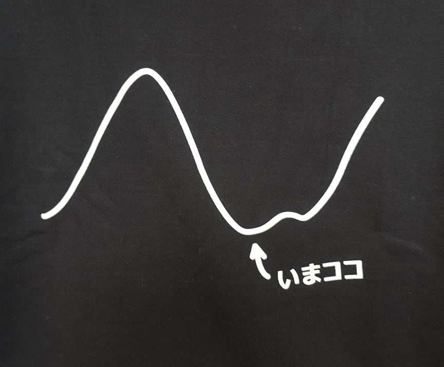 いまココと指したところは、沈んでいるときで、ひたすら寝込み、なにも興味が持てない状態。「いまはうつの時期だよ」と、しゃべらなくても着ているだけで分かる便利なデザインです。